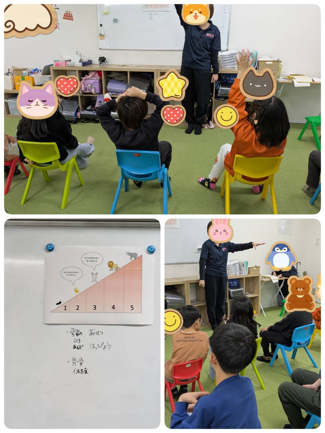 状況に合わせて、声の大きさを伝える時、その時に合わせて2の声3の声とみんなと話し合いました(・∀・)